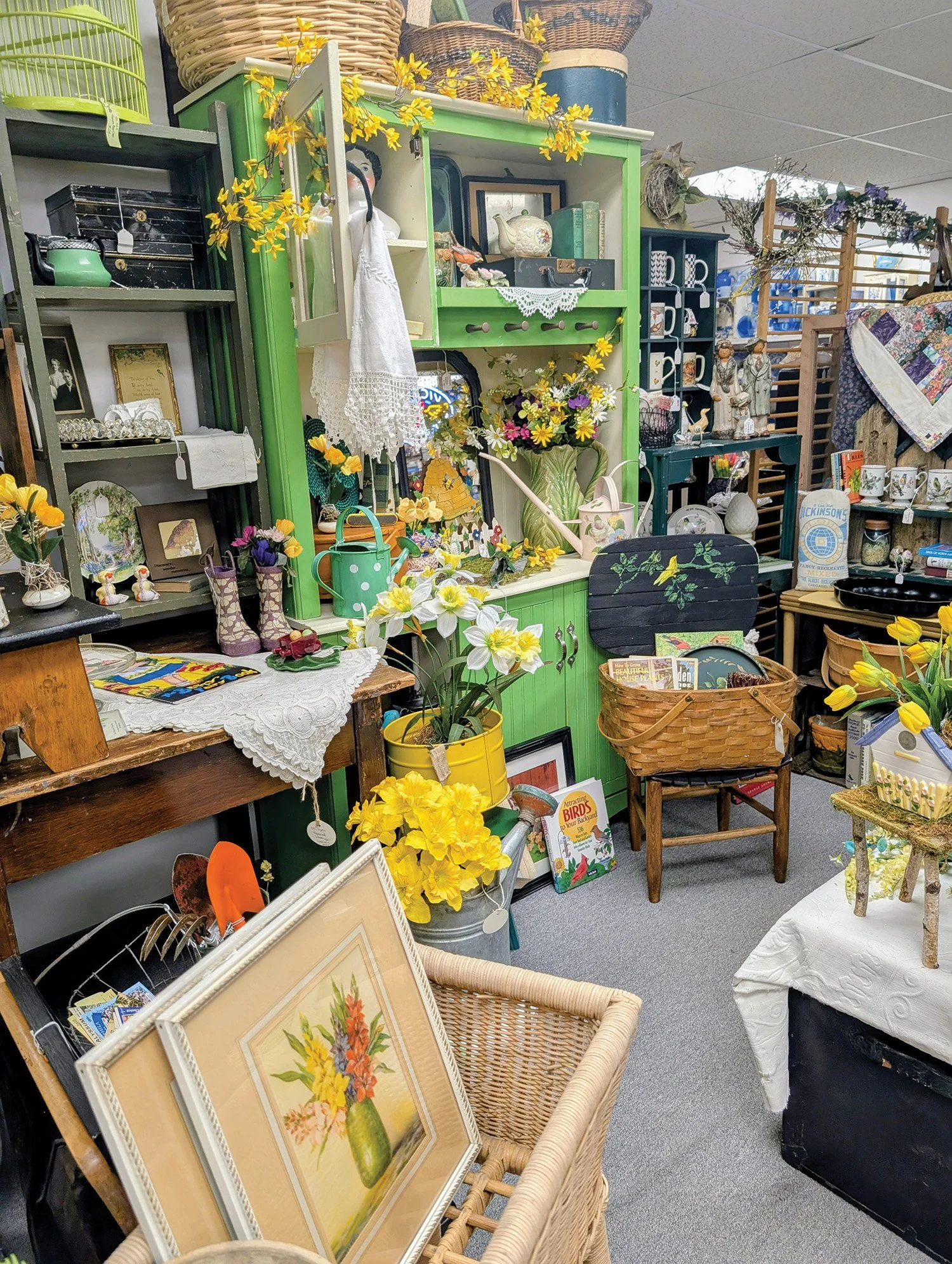Single owner shop since 1981! A large general line, including mid century, western, vinyl records, jewelry, rocks, and books.